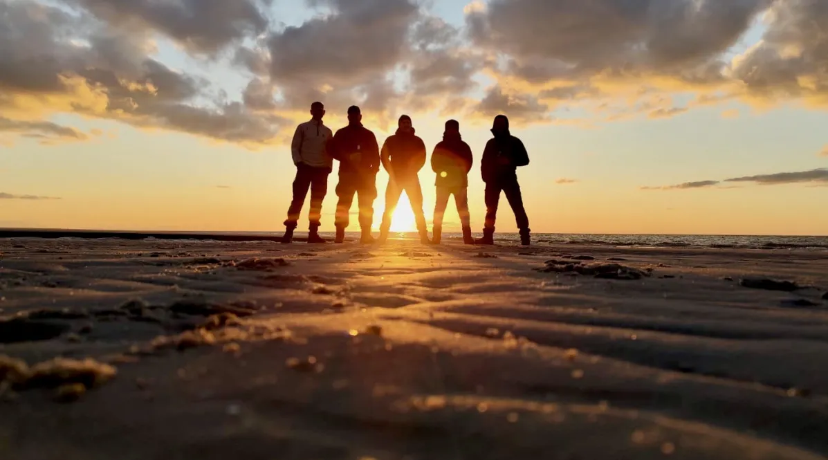 Klaro, das muss. Das gehört dazu. Letzter Abend, Kniepsandwandern vor Sonnenuntergangskulisse. Sowas fehlt in Sachsen den jungen Forstis, die hier eine langjährige Freundschaft fortsetzen. Weil wieder in der Freiwilligenwoche mit dabei: eine handvoll