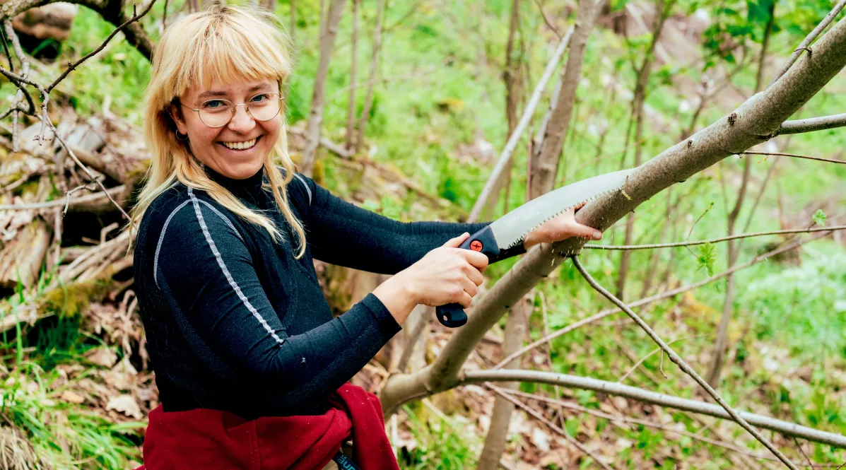 Heute wird geschnitten in der Jungbestandspflege. Nach mehreren Tagen Wildschutzzaunabbau und Upcycling des Zauns zu Einzelschützen für Weißtannen vor Rinde schälenden und geweihtragenden Vierbeinern. Sichtbar: Trotz viel Wild wächst manchmal doch noch was hoch außer Fichten. Entlang einer Bergahornallee hinauf zum Rennsteig besonders zahlreich der Bergahorn. Nur Bergahorn, kein Spitzahorn - die beiden Arten teilen sich hier die Flächen nach Meereshöhe. Unten Spitzahorn, oben Bergahorn. Logo.