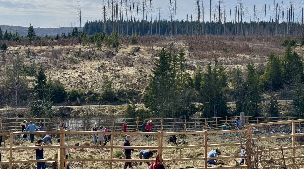 Beherzt angepackt für naturnahe Waldökosysteme im Harz – das haben heute 75 motivierte BahnBonus Kund*innen im Schächerbach-Tal südlich von Braunlage.