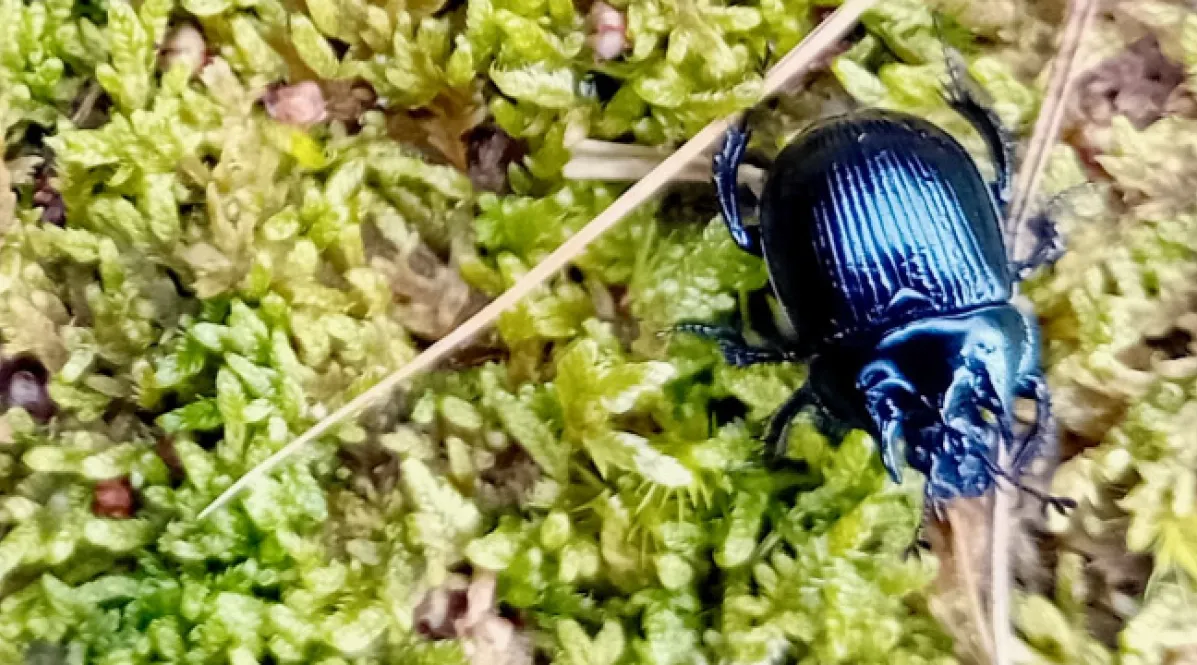 Während der Pflege der Dünenheide auf Hiddensee taucht plötzlich ein Promi auf. Wahrscheinlich hat ihn die Arbeit der Freiwilligen aus seiner Erdhöhle gelockt. Typhaeus Typhoeus, bekannt als Stierkäfer, Koprophage, Mistkäfer und amtierendes Insekt des Jahres. Der sandige Inselheideboden ist optimaler Wohnort für ihn. Hier kann er seine langen Röhren und Kammern anlegen, in die er die Köttel von Reh oder Kaninchen