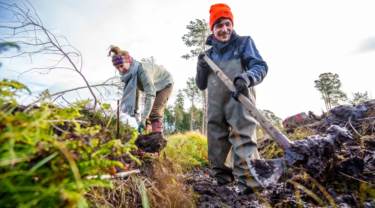 Moorwiedervernässung: Der Projektort in Nordhessen ist ein Einsatzort zum Rückhalt von Wasser in verschiedenen Landschaftsteilen. In den im Kaufunger Wald sowie angrenzenden Waldgebieten gelegenen Moorkomplexen werden vom Bergwaldprojekt e.V. mit Freiwilligen mit dem Verschluss von Entwässerungsgräben die Voraussetzungen dafür geschaffen, dass die Moore ihre natürlichen Funktionen wie Speicherung von Kohlenstoff, Lebensraumvielfalt und Ausgleich im Wasserhaushalt wieder erfüllen können. Dies geschieht mithilfe des Baus von Stauwerken und mit Grabenverfüllung. Ziel ist die Vollvernässung der Flächen. Da besonders auch Nordhessen große Waldflächen an die vergangenen trockenen Sommer verloren hat, geht es am Projektstandort perspektivisch auch zunehmend um den Wasserrückhalt in den Waldbeständen.