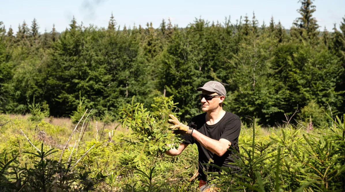 Wasserrückhalt im Wald: Pflegeeingriffe zur Entnahme der einsetzenden Fichtennaturverjüngung sichern nun die Erfolge des LIFE-Natur-Projekts. Die Freiwilligen des Bergwaldprojekts schneiden junge Fichtenbäume in Feuchtwäldern oder an Gewässern ab, da diese zu viel Wasser aus dem Boden ziehen, durch ihre Nadeln den pH-Wert beeinflussen und standortheimische Arten verdrängen. Neben diesen Pflege-Eingriffen liegt das Augenmerk der Arbeiten besonders auf der Waldpflege. Das heißt, nicht mehr benötigte Zäune abbauen oder bestimmte Bäume fällen, damit andere Bäume mehr Licht, Wasser und Nährstoffe zur Verfügung haben und so ein möglichst stabiler Mischwald entsteht. Doch der Soonwald ist auch Modellregion in Rheinland-Pfalz für die Walderschließung der Zukunft. Fokus ist hier der Wasserrückhalt im Waldboden – die Bergwaldprojekt-Freiwilligen verschließen also, wie in den Mooren des benachbarten Hunsrücks, vor allem Entwässerungsgräben mit Sperren und leiten das Wasser in die forstlichen Bestände.